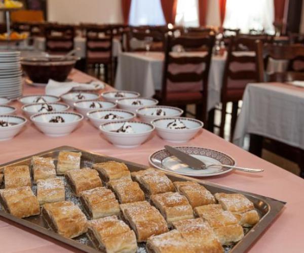 Restaurantul dotat cu aer condiţionat serveşte preparate locale şi internaţionale în sala de mese sau pe terasa acoperită. Oaspeţii pot savura aperitive la bar, iar vara se pot bucura de spectacole live organizate periodic pe terasă.